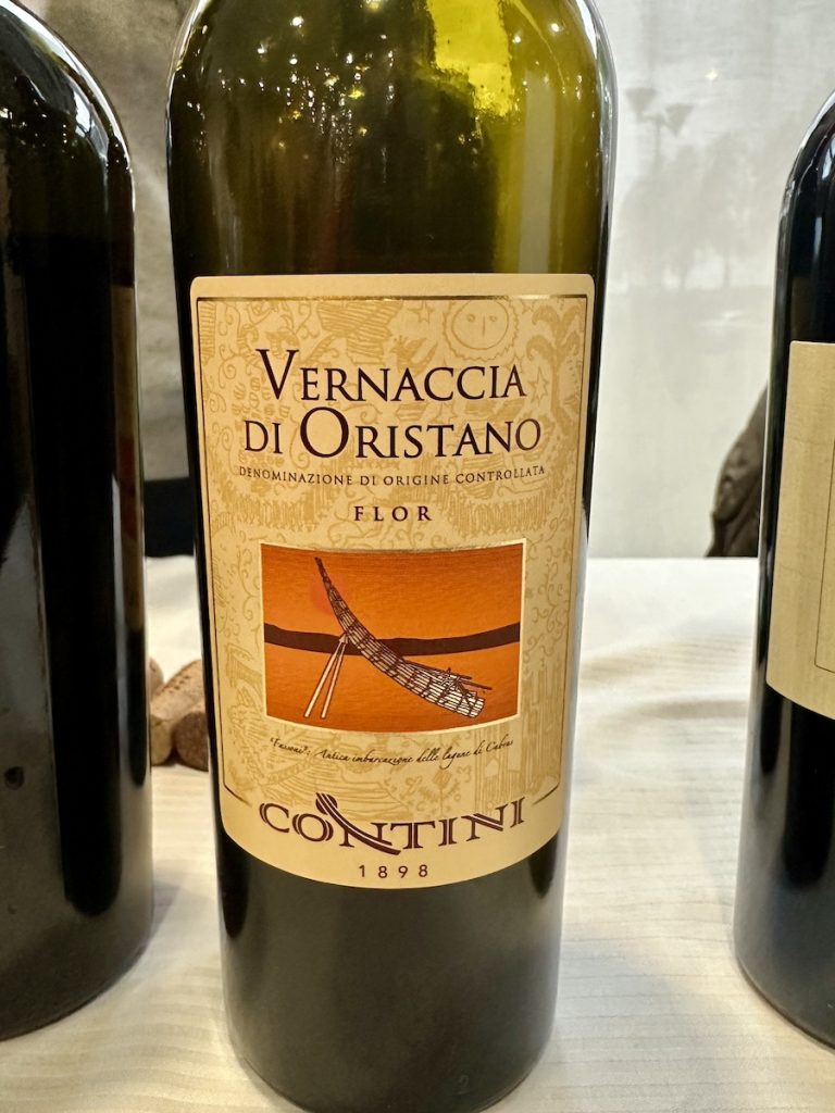 – VERNACCIA DI ORISTANO DOC “FLOR” 2020, CONTINI: ossidazione intrigante quella che introduce alle note di miele di castagno e albicocca disidratata.