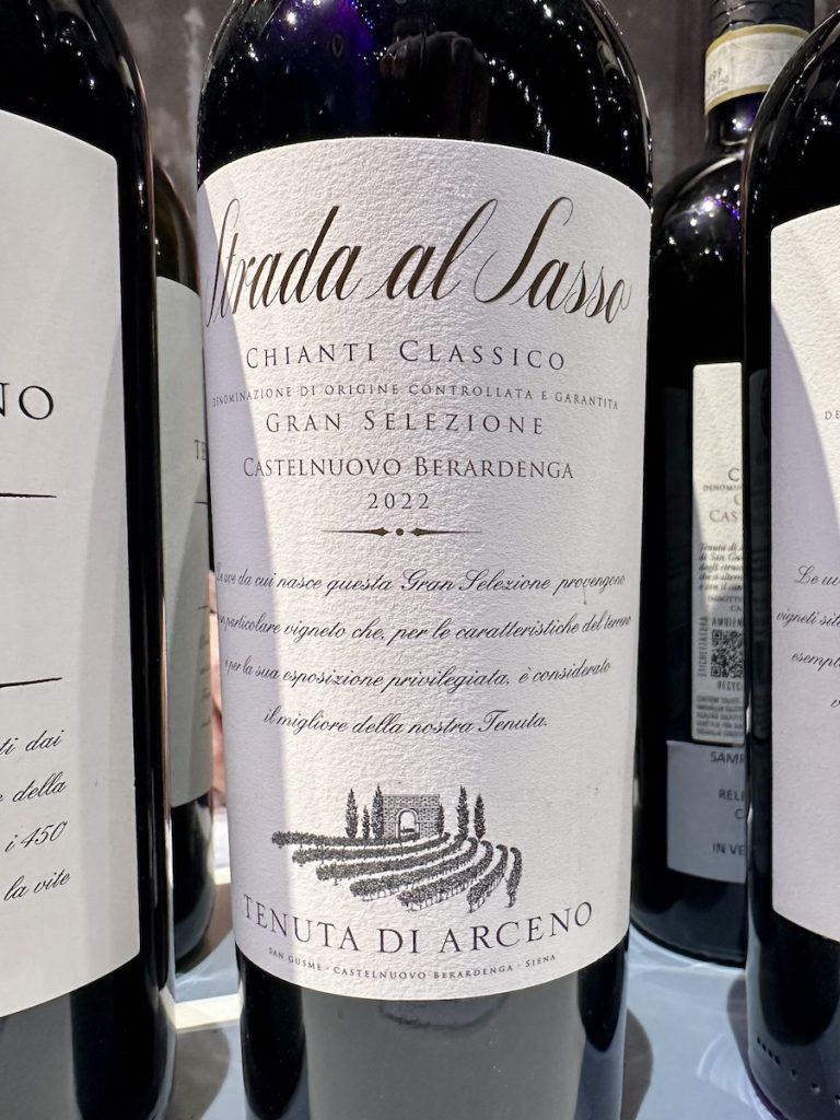 – CHIANTI CLASSICO DOCG GRAN SELEZIONE “STRADA AL SASSO” 2022, TENUTA DI ARCENO: balsamicità di finocchietto selvatico, tabacco e china introducono un sorso che non dimentica eleganze floreali e freschezze d’agrume prima di chiudere sulle dure note del ferro e dell’oliva nera.