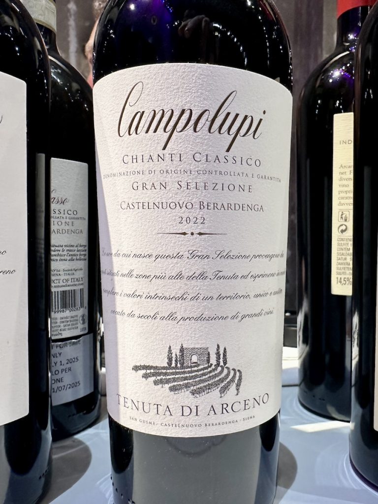 – CHIANTI CLASSICO DOCG GRAN SELEZIONE “CAMPOLUPI” 2022, TENUTA DI ARCENO: olfatto più complesso del precedente, forse un po’ arruffato ma proprio per questo affascinante.