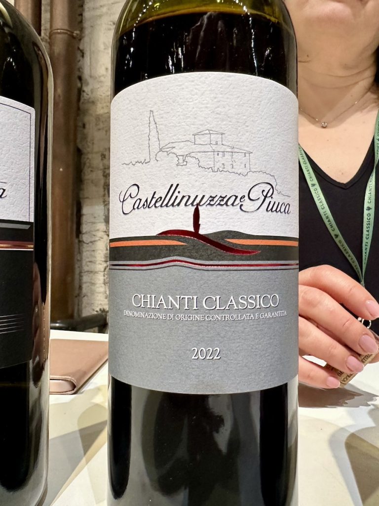 – CHIANTI CLASSICO DOCG 2022, CASTELLINUZZA E PIUCA: fresco e profumato e “colorato” si destreggia tra petali di rosa, pesca gialla, mela rossa, il viola dell’amarena…