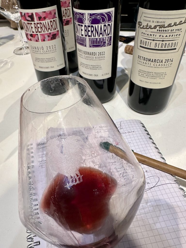 – CHIANTI CLASSICO DOCG “SANGIÒ” 2022, MONTE BERNARDI: un olfatto “toscanaccio” e irriverente, che vive di ruvidi contrasti tra le amaricanti vegetalità delle erbe aromatiche, le timide gentilezze dei fiori di campo e le succose dolcezze dell’arancia.