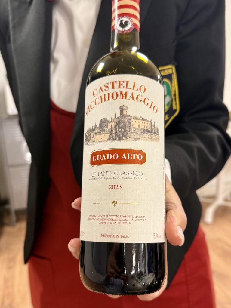 – CHIANTI CLASSICO DOCG “GUADO ALTO” 2023: inizialmente terragno si scrolla di dosso la polvere a suon di soffi di eucalipto e frutti di rovo.
