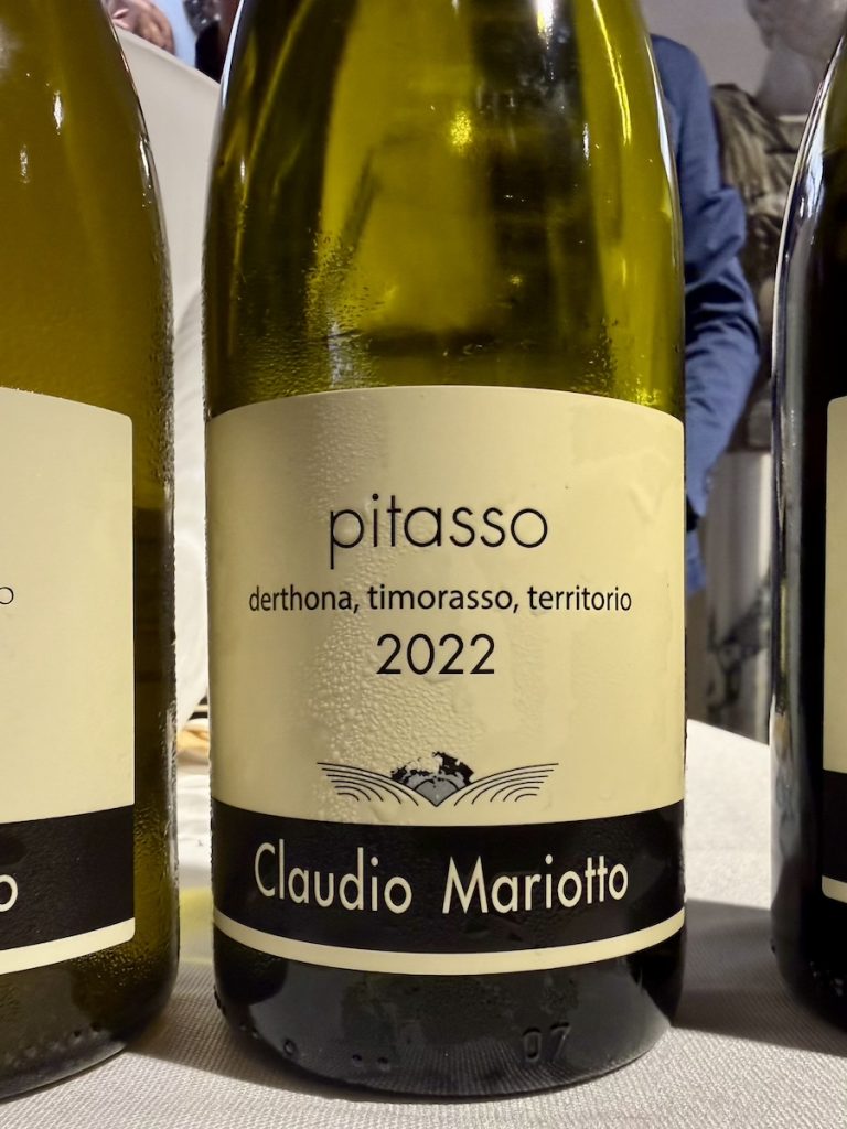 – COLLI TORTONESI DOC TIMORASSO “PITASSO” 2022, CLAUDIO MARIOTTO: cespugli di macchia mediterranea avvolgono anice, camomilla, miele, zafferano, resine nobili e lavanda in una atmosfera diffusa di idrocarburi.