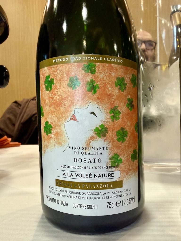 – SPUMANTE METODO TRADIZIONALE ROSATO 2018, LA PALAZZOLA (UMBRIA): spiazzante già all’occhio, con quella sua mise tenue ma non troppo, svolazzante…un invito a pensieri impuri…