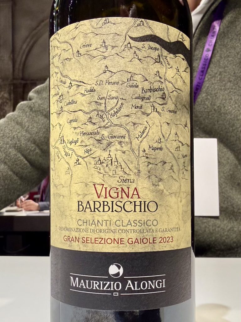 – CHIANTI CLASSICO DOCG GRAN SELEZIONE GAIOLE “VIGNA BARBISCHIO” 2023, MAURIZIO ALONGI: humus, grafite, radici, foglie secche, agrifoglio, oscura, luminosa bellezza in un olfatto nitido e fresco, mentolato, aromatico punteggiato di tè, frutti rossi succosi e freschezze d’arancia dove e quando serve.